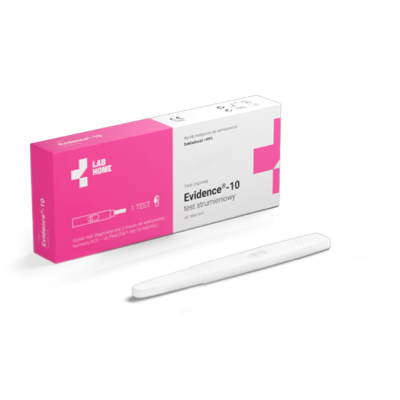 Evidence®-10 jest swoistym, szybkim testem immunodiagnostycznym do oznaczania poziomu hormonu hCG (ludzkiej gonadotropiny kosmówkowej) w moczu. Test ULTRACZUŁY – wykrywa stężenie hCG na poziomie 10 mIU/mL.