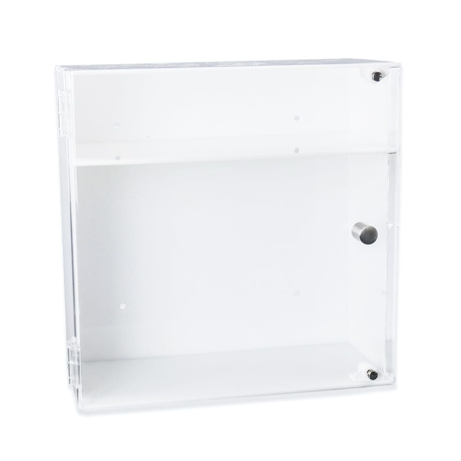 Pleksi z miejscem na moduł - to gablota przeznaczona do przestrzeni biurowych oraz takich, w których elegancki wygląd gra istotną rolę. Ma minimalistyczną formę, dzięki czemu nie zajmuje dużo miejsca i jest łatwa do wkomponowania we wnętrze, w którym się znajduje. Jej niewielkie rozmiary pozwalają na montaż nawet na wąskich słupach i występach. Przezroczysty materiał, z którego jest wykonana, pozwala na ciągła kontrolę stanu urządzania bez konieczności wyciągania go z gabloty.