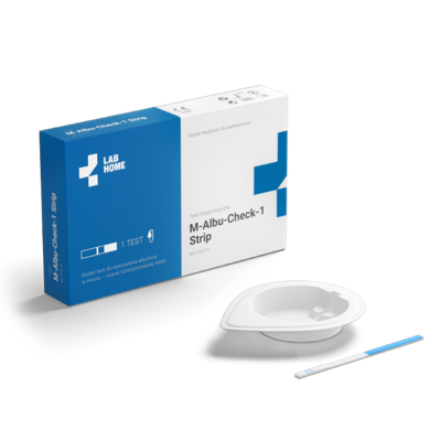 M-Albu-Check-1 Strip jest szybkim immunochromtograficznym testem do jakościowego potwierdzenia obecności albuminy w moczu. Test po 10 minutach pozwala stwierdzić patologiczne stężenie albuminy w moczu.