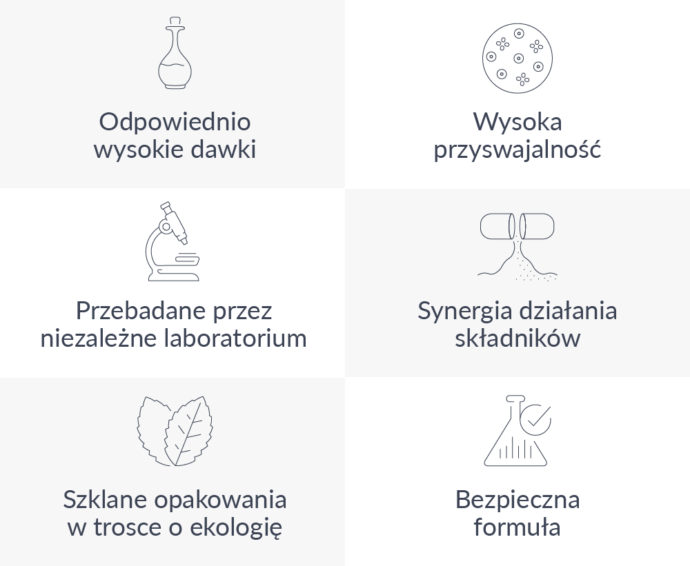 Warto pamiętać, że odpowiednio zbilansowana dieta jest niezbędna dla prawidłowego funkcjonowania organizmu. Suplement diety nie może być stosowany jako zamiennik zróżnicowanej diety i zdrowego stylu życia.
