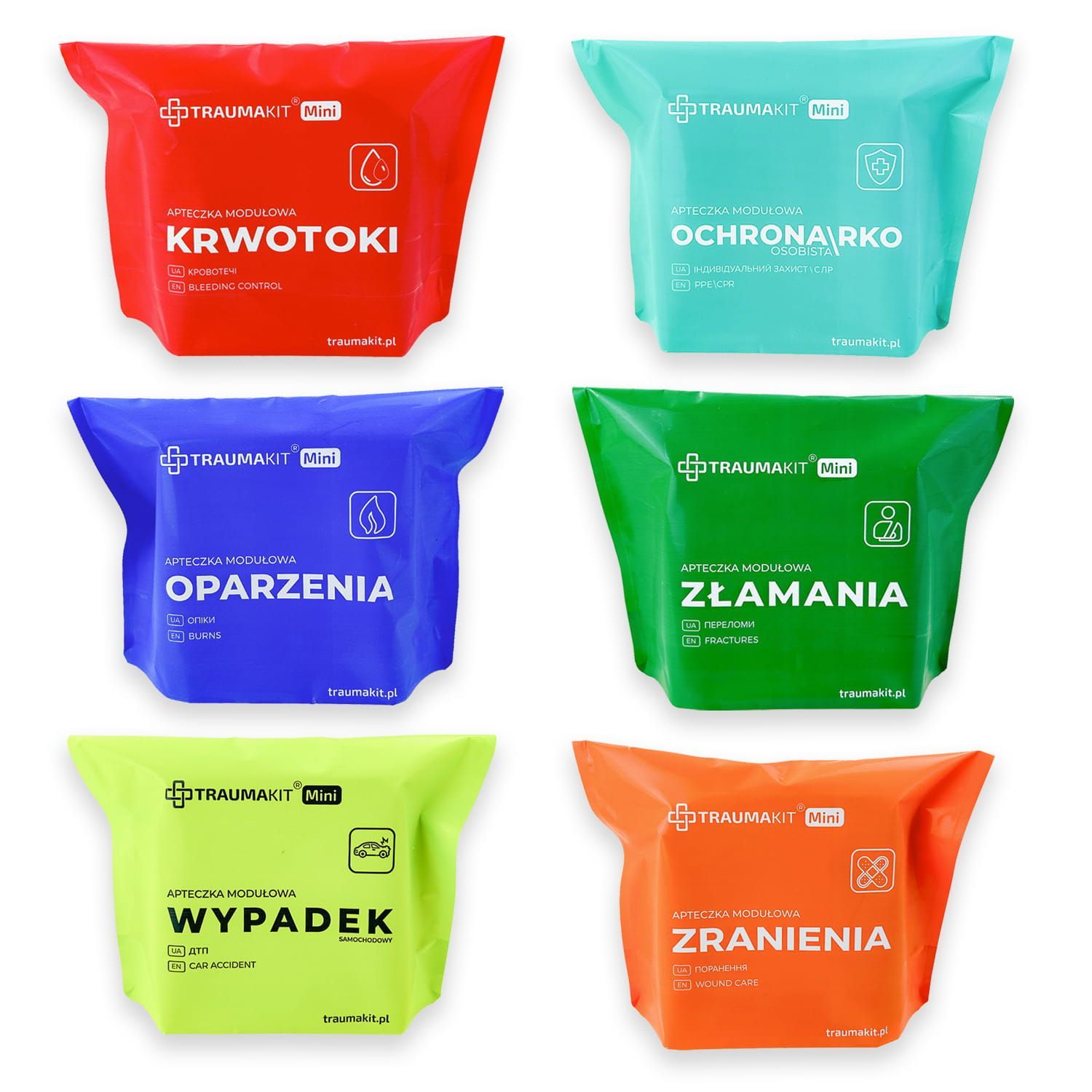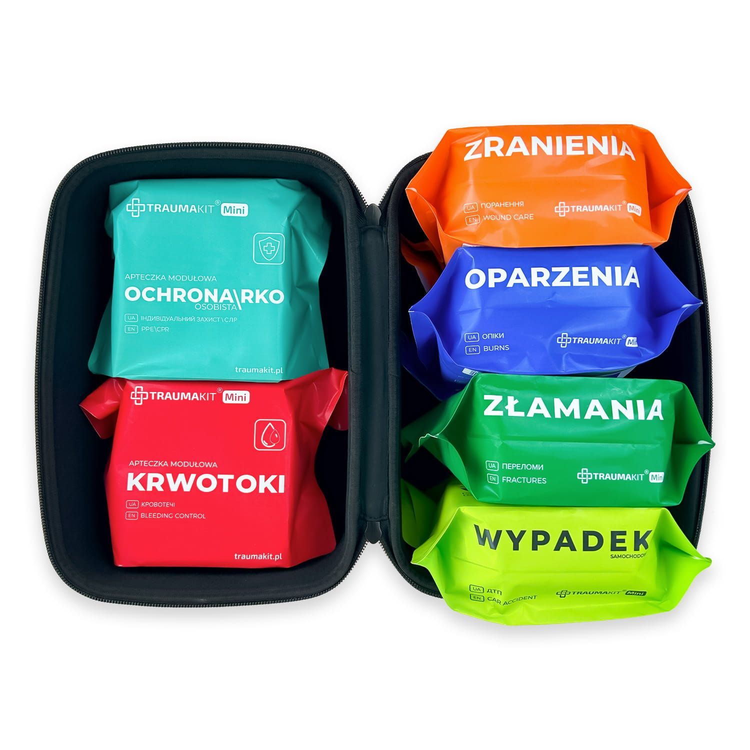 Nowa wersja Apteczek Modułowych - TRAUMAKIT Mini, to zmniejszona i jeszcze bardziej poręczna edycja standardowych zestawów, która oferuje wyjątkową kompaktowość w zakresie zawartości i funkcjonalności.